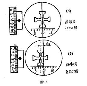 6)將橋板再次放到0—1的位置上(圖2—4)調(diào)節(jié)讀數(shù)鼓輪,使指示線與與十字影象對準。記下第一個度數(shù)a1。