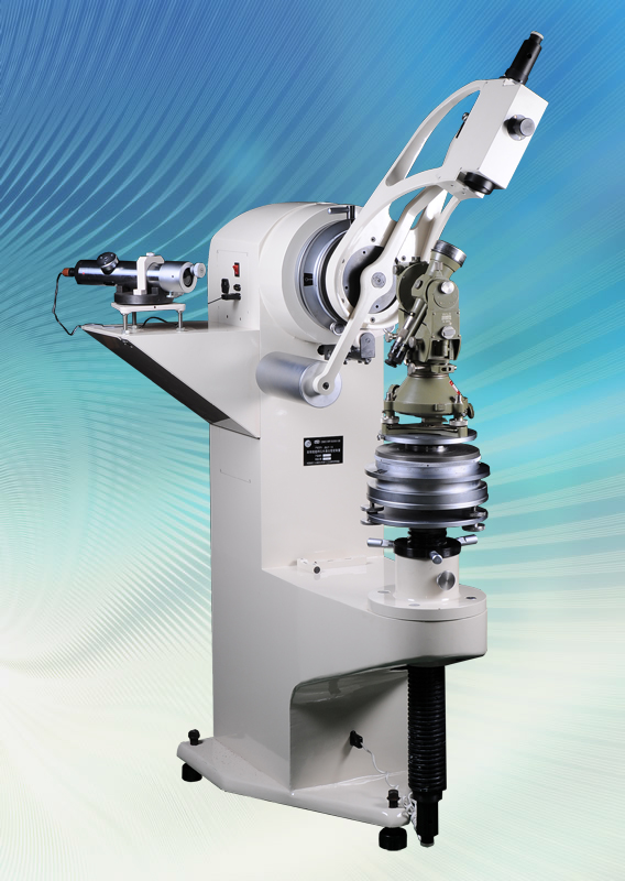 1一升降螺桿        2-升降螺母        3-立式多齒分度臺        4一儀器工作臺        5—水泡        6-微調機構        7一立式多齒分度臺手柄        8一定位螺旋        9一臥式多齒分度臺        10—臥式多齒分度臺手柄        11一檢調管及其安裝座        12一自準直光管        13—底腳螺釘