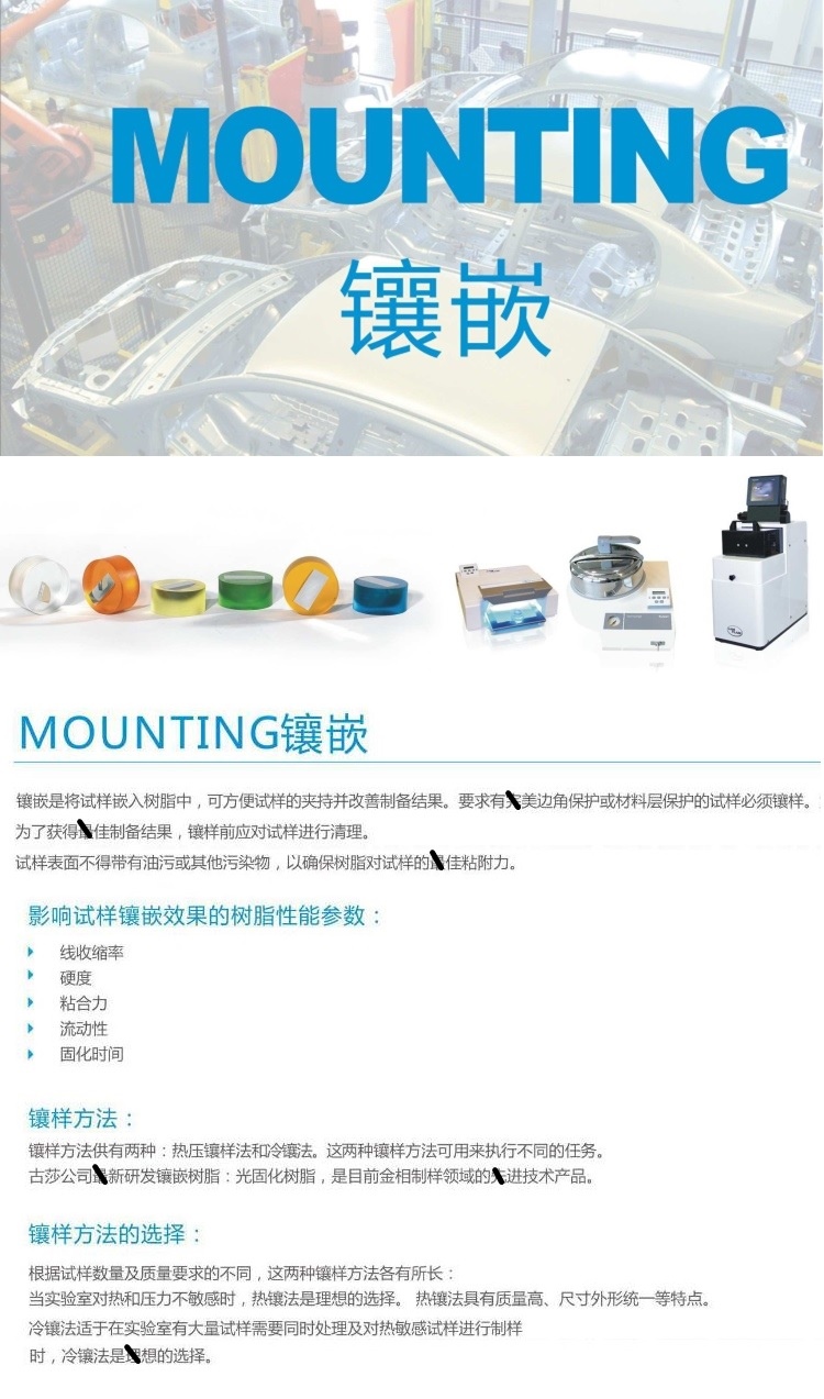 金相試樣切割機(jī) 金相試樣磨拋機(jī) 金相試樣鑲嵌機(jī) 金相試樣預(yù)磨機(jī) 金相試樣拋光機(jī) 電解拋光腐蝕儀 光譜砂帶磨樣機(jī) 金相磨平機(jī) 標(biāo)準(zhǔn)試樣 金相耗材/輔料 古莎Kulzer 端子分析儀
