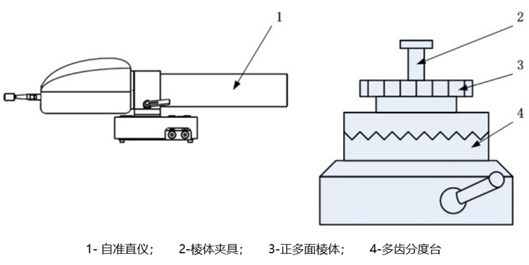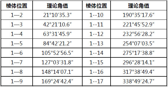 金屬正多面棱體具有封閉圓周角的特性,不需要與角度基準(zhǔn)比較,而用兩個(gè)自準(zhǔn)直儀利用全組合法測(cè)量和計(jì)算出各夾角的偏差值,使用時(shí)加以修正,就可以得到更高的測(cè)量精度。